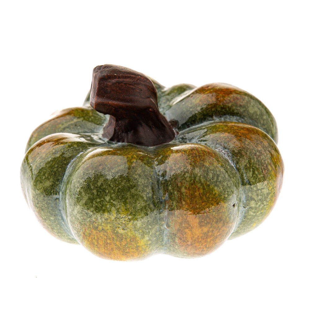 Táto keramická dekorácia v tvare zelenej jesenej tekvice je krásnym doplnkom, ktorý dodá vášmu interiéru a exteriéru prírodný a útulný nádych. Lesklá glazúra zvýrazňuje jej bohaté farebné prechody od zelenej po hnedo-oranžovú a zdôrazňuje jej realistický vzhľad. Vďaka kompaktným rozmerom 10 x 7 cm sa dá ľahko kombinovať s inými jesennými dekoráciami a je vhodná na stôl, poličku, parapet alebo do aranžmánu s lístím, svietnikmi alebo šiškami.Dekorácia vyzerá prirodzene a zároveň elegantne, takže ju ocenia milovníci tradičného aj moderného štýlu. Keramický dizajn zaručuje pevnosť a odolnosť, takže tekvicu môžete používať každý rok na jeseň. Je ľahko udržiavateľná a vďaka svojej univerzálnej farbe sa hodí do rôznych štýlov interiéru.Hlavné výhody produktu: