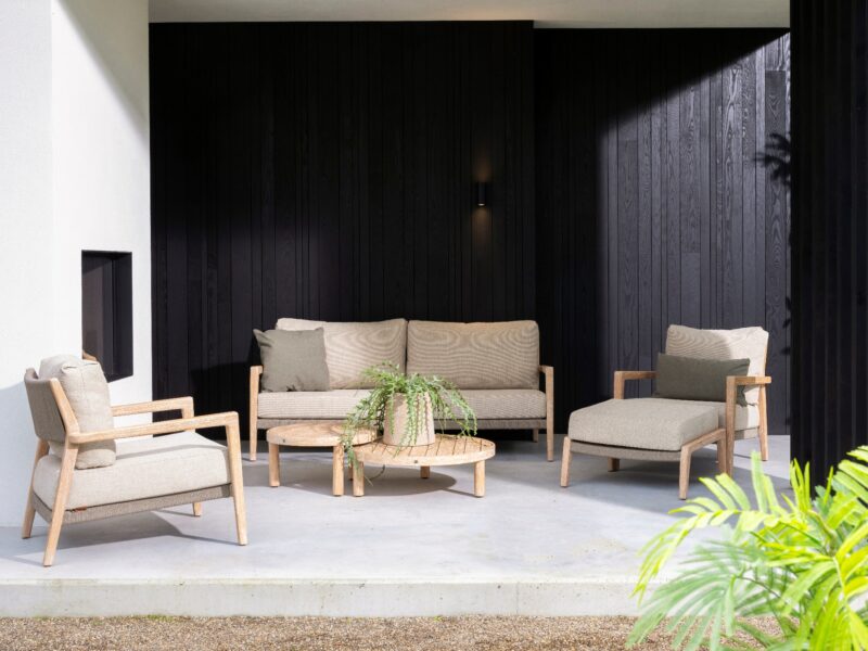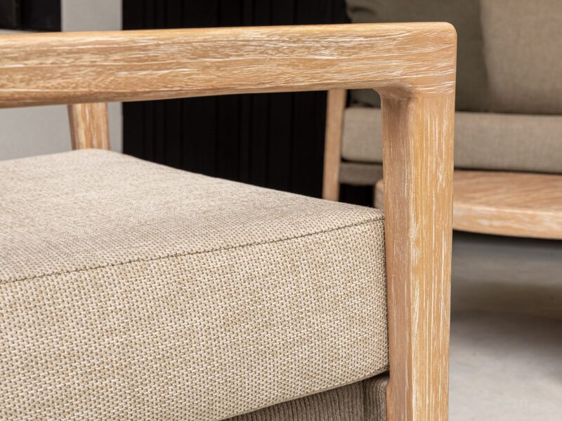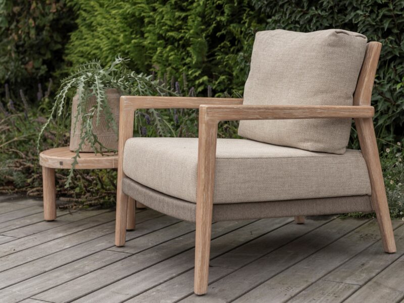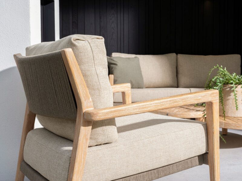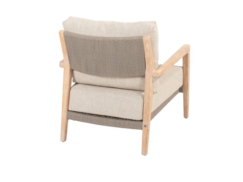 Elegantné kreslo Julia z brúseného teaku, rope výpletu a vysokokvalitných pohodlných vankúšov v príjemných sivých odtieňoch od značky 4 Seasons Outdoor.