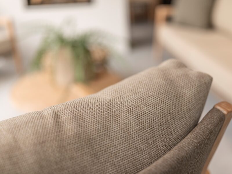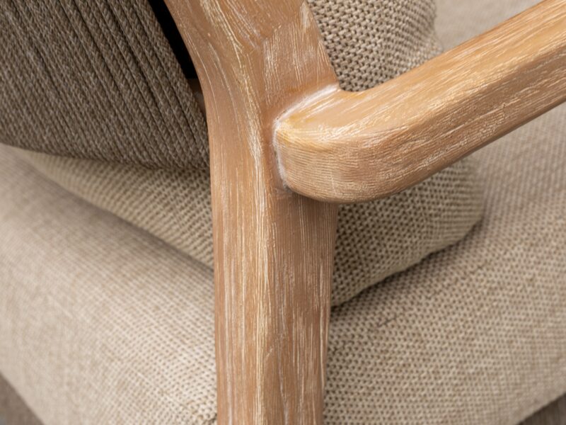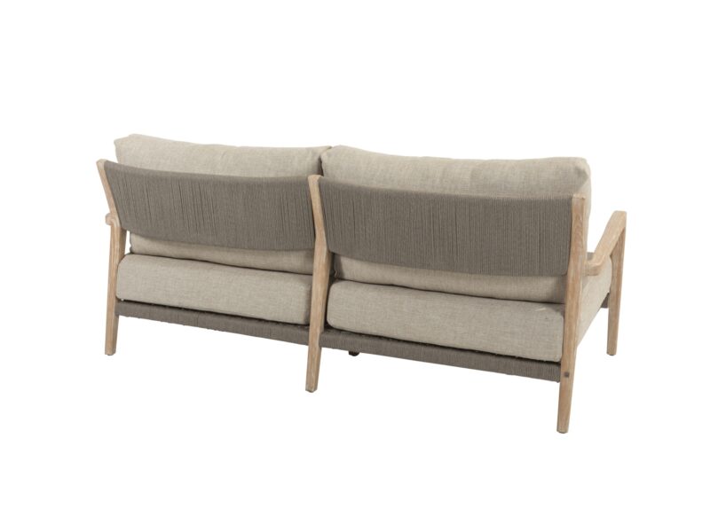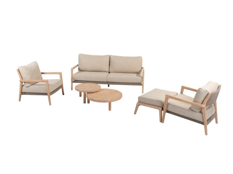 Elegantná sedacia súprava s taburetkou Julia z brúseného teaku, rope výpletu a vysokokvalitných pohodlných vankúšov v príjemných sivých odtieňoch od značky 4 Seasons Outdoor.