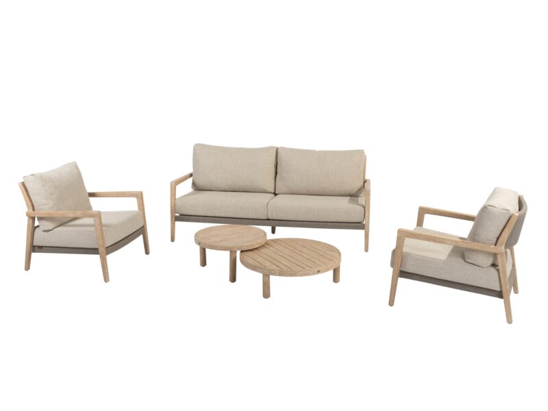 Elegantná sedacia súprava Julia z brúseného teaku, rope výpletu a vysokokvalitných pohodlných vankúšov v príjemných sivých odtieňoch od značky 4 Seasons Outdoor.