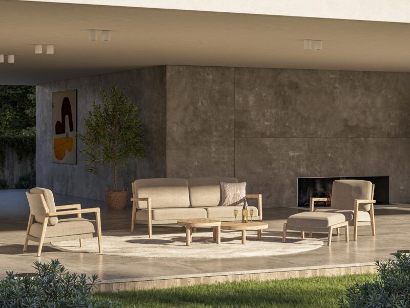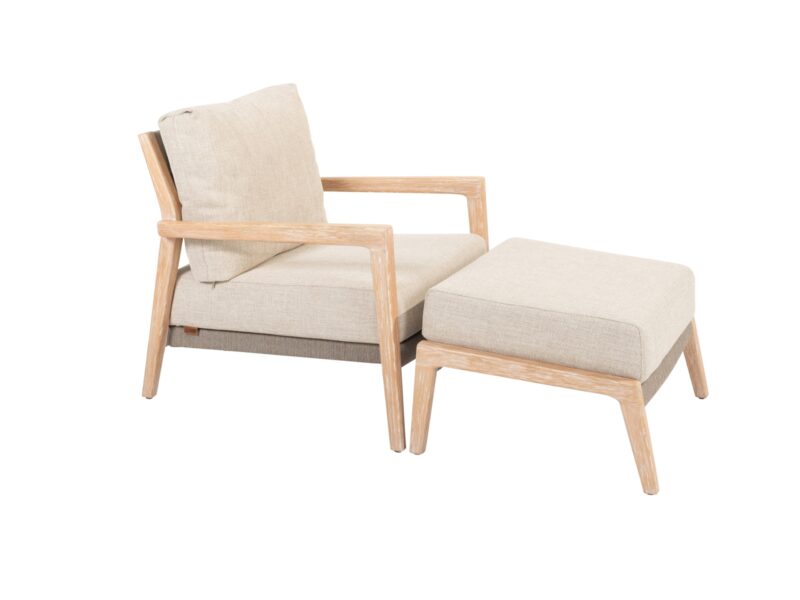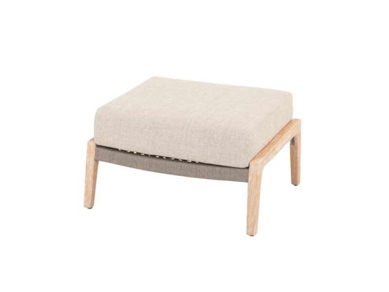 Elegantná taburetka Julia z brúseného teaku, rope výpletu a vysokokvalitných pohodlných vankúšov v príjemných sivých odtieňoch od značky 4 Seasons Outdoor.