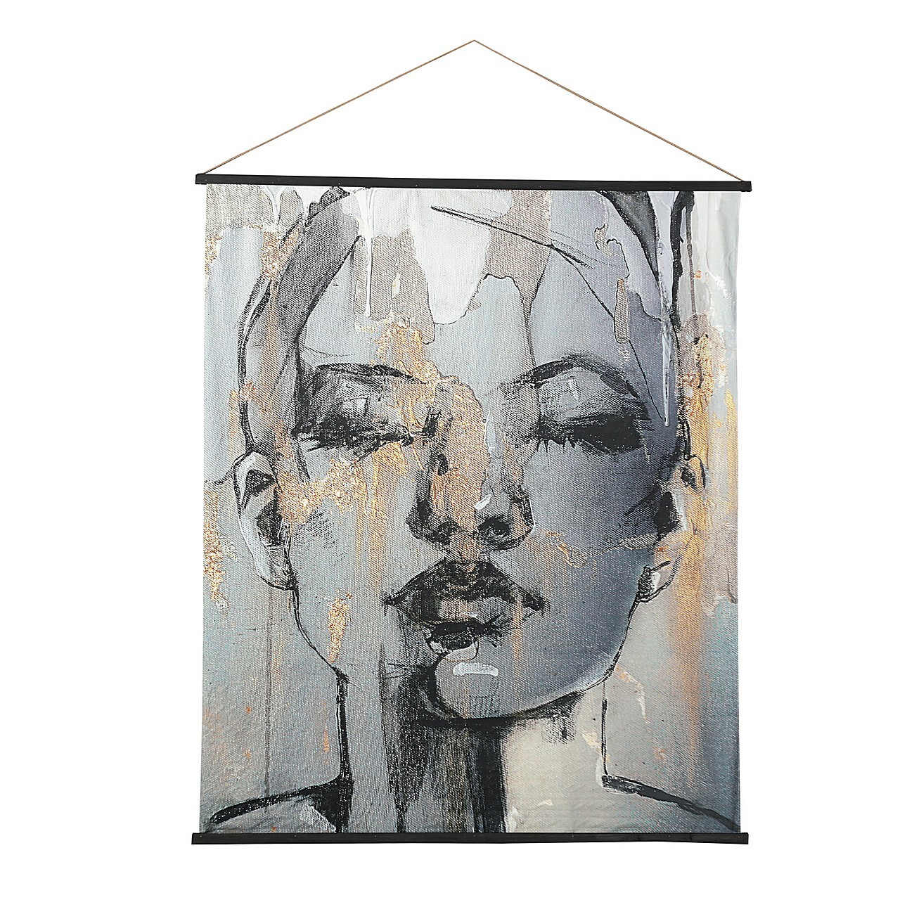 Kakemono zobrazujúce ženskú tvár. Kakemono je japonský obrázok – zvitok namaľovaný na plátno, určený na zavesenie na stenu. Je povinný dekoratívny prvok miestnosti určenej na čajový obrad.Vyrobené z polyesterového plátna. Horný a spodný okraj kakemono sú pripevnené k dreveným stĺpom pre ľahké valcovanie a skladovanie.Skvelý nápad na originálny darček pre blízkych.Pripevní sa na stenu špagátom.Rozmery: šírka 140cm, výška 170cm, výška so špagátom 200cm.Materiál: polyesterové plátno.