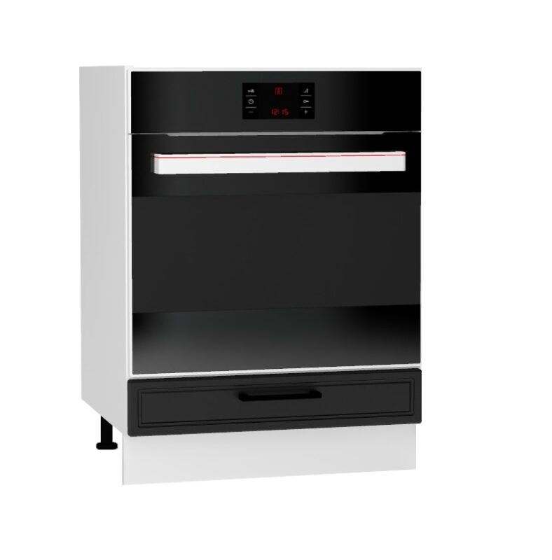 Kuchyňa KAMELIA je vynikajúcim príkladom kuchynského nábytku, ktorý nestarne. Vyznačuje sa moderným nábytkom v klasickom štýle. Jej vzhľad dopĺňa jemné frézovanie okolo prednej časti skrinieK.Korpus nábytku je vyrobený zo 16 mm hrubej LTD dosky v bielom prevedení. Predná časť je z MDF dosky s hrúbkou 16 mm. Je potiahnutá PVC fóliou. Dolná kuchynská skrinka je v čiernej farbe v matnom prevedení. Skrinka je vhodná na vstavanú rúru.Rozmery (š,v,h): 60 x 82 x 52,4 cm.Súčasťou je sokel v bielej farbe a nožičky.Úchyty nie sú v cene. Je potrebné ich doobjednať.Dodávame v demontovanom stave.