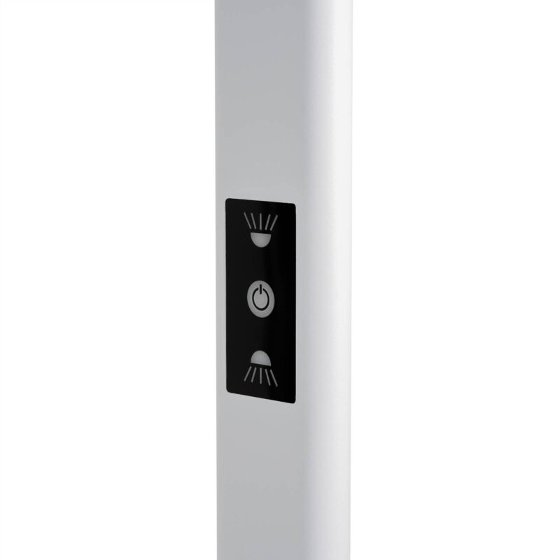 Stojacia lampa LED Zyair do kancelárie z bieleho hliníka Zyair je moderná stojacia lampa LED do pracovne alebo kancelárie. Svietidlo je vyrobené z hliníka v štýlovej bielej farbe a pozostáva zo štíhlej nohy, ktorá podopiera úzky prvok, ktorý funguje ako akési tienidlo. V tienidle sú trvalo nainštalované LED diódy, ktoré vytvárajú univerzálne biele osvetlenie. Svietidlo má aj dotykový stmievač, pomocou ktorého možno svietidlo kedykoľvek jednoducho stlmiť a vygenerovať správny jas. Ak svietidlo Zyair skombinujete s ďalšími svietidlami z jeho série, môžete vytvoriť harmonický celkový dojem v rámci štýlu zariaďovania – UGR < 19 - IK02 - SDMC: 3 - podstavec v tvare U