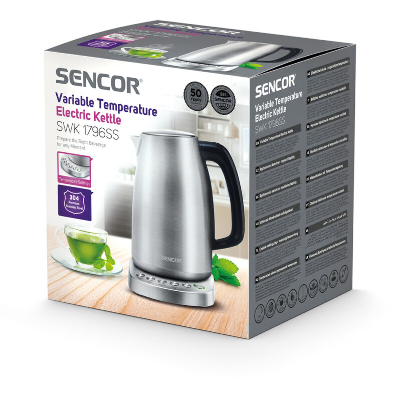 Uvarte chutný teplý nápoj aj pre početnú rodinu. Predstavujeme vám rýchlovarnú kanvicu s reguláciou teploty značky Sencor vo vysoko kvalitnom nerezovom vyhotovení SUS 304. Nebojí sa obslúžiť aj zástup nedočkavých šálok. Samozrejme jej nechýba skvele viditeľný vodoznak, vďaka ktorému budete mať prehľad o množstve vody v kanvici.Vlastnosti a parametre: