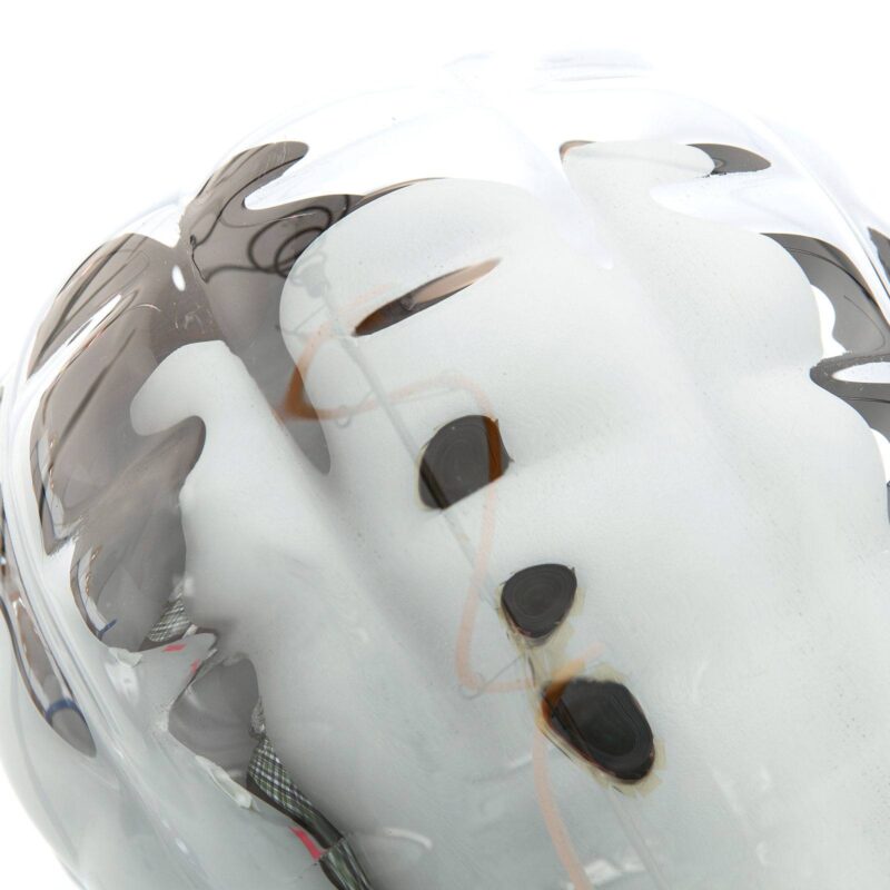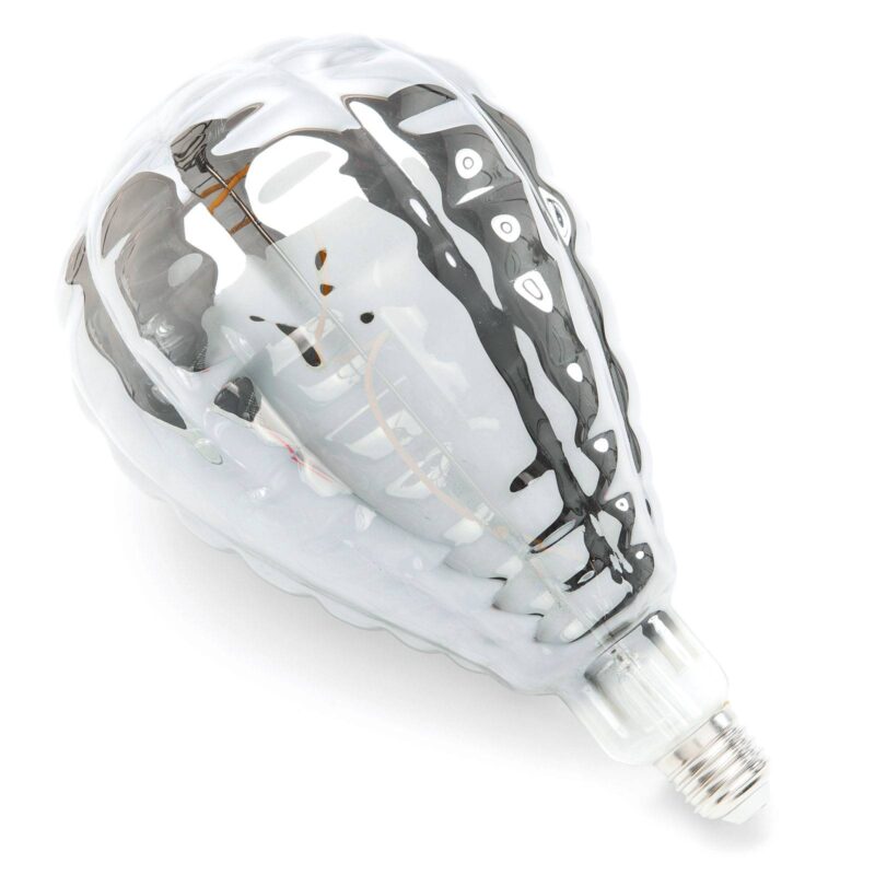 Nadrozmerná LED lampa Riffle Ball s lesklým strieborným sklom Riffle Ball je dekoratívna lampa s technológiou LED s dlhou životnosťou. Na to, aby sa lampa Riffle Ball čo najlepšie predviedla, stačí jednoduchá objímka E27 bez tienidla. V tomto prípade je hviezdou samotný zdroj svetla. LED lampa Riffle Ball od spoločnosti KARE je vybavená nadrozmerným sklom. To je rebrované s miernymi krivkami, mierne tónované do šeda a má lesklý povrch. LED diódy sú usporiadané na zakrivenej špirále Vlastnosti: – trieda energetickej účinnosti A – mimoriadne teplé svetlo (2 200 K) – možnosť stmievania – dekoratívny vzhľad – ideálne na kombináciu s jednoduchou objímkou E27