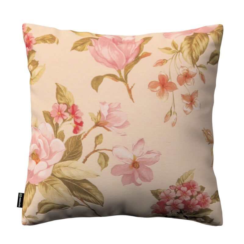 Karin – jednoduchá obliečka, výrazný vzor ružovozelené kvety na ľanovom podklade , 60 x 60 cm, Londres, 143-87