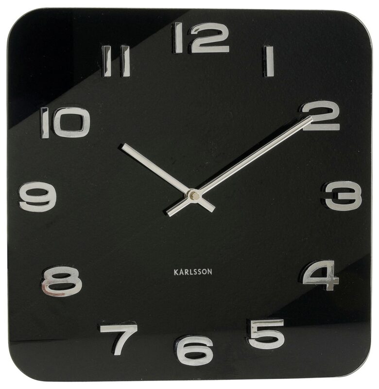 Elegantné sklenené čierne hodiny v modernom čistom dizajne. Ciferník v sýto čiernej lesklej farbe s chrómovanými číslami a ručičkami. Quartzový hodinový strojček poháňaný batériou. Záruka 2 roky.