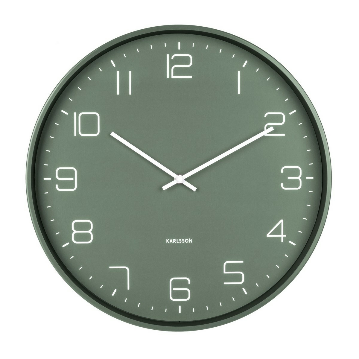 Elegantné nástenné hodiny v minimalistickom dizajne značky Karlsson výborne doplnia interiér vašej pracovne, obývacej izby i spálne. Dobre čitateľný ciferník v zelenom prevedení a krytý ochranným sklom, veľké arabské číslice a ručičky v striebornom prevedení dopĺňa zelené kovové puzdro. Hodiny poháňa quartzový strojček na batériu s tichým chodom. (1x AA batéria, nie je súčasťou balenia)Nástenné hodiny holandskej značky Karlsson sú kvalitné, nápadité a funkčné dizajnové doplnky, ktoré oživia každý interiér. Ak od hodín očakávate dizajn a vkus, zvoľte značku Karlsson.Značka Karlsson pôsobí na trhu od roku 1999. So zastúpením vo viac než 80 krajinách sveta patrí medzi najobľúbenejšie a najpredávanejšie značky dizajnových hodín vo svojej triede na svete.Karlsson prichádza niekoľkokrát do roka s novými modelmi, ktoré pravidelne udivujú svojou originalitou a nevšednosťou.