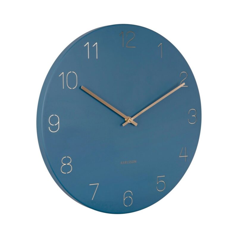 Dizajnové, moderné aj elegantné, to všetko v sebe snúbia nástenné hodiny Karlsson. Minimalistické prevedenie skvele doplní interiér vášho domova. Lakovaný kov v modrom prevedení, grafírovaný ciferník a zlaté ručičky sú v dokonalom súlade. Quartzový hodinový batériový strojček.Nástenné hodiny holandskej značky Karlsson sú kvalitné, nápadité a funkčné dizajnové doplnky, ktoré oživia každý interiér. Ak od hodín očakávate dizajn a vkus, zvoľte značku Karlsson. Značka Karlsson pôsobí na trhu od roku 1999. So zastúpením vo viac než 80 krajinách sveta patrí medzi najobľúbenejšie a najpredávanejšie značky dizajnových hodín vo svojej triede na svete. Karlsson prichádza niekoľkokrát do roka s novými modelmi, ktoré pravidelne udivujú svojou originalitou a nevšednosťou.