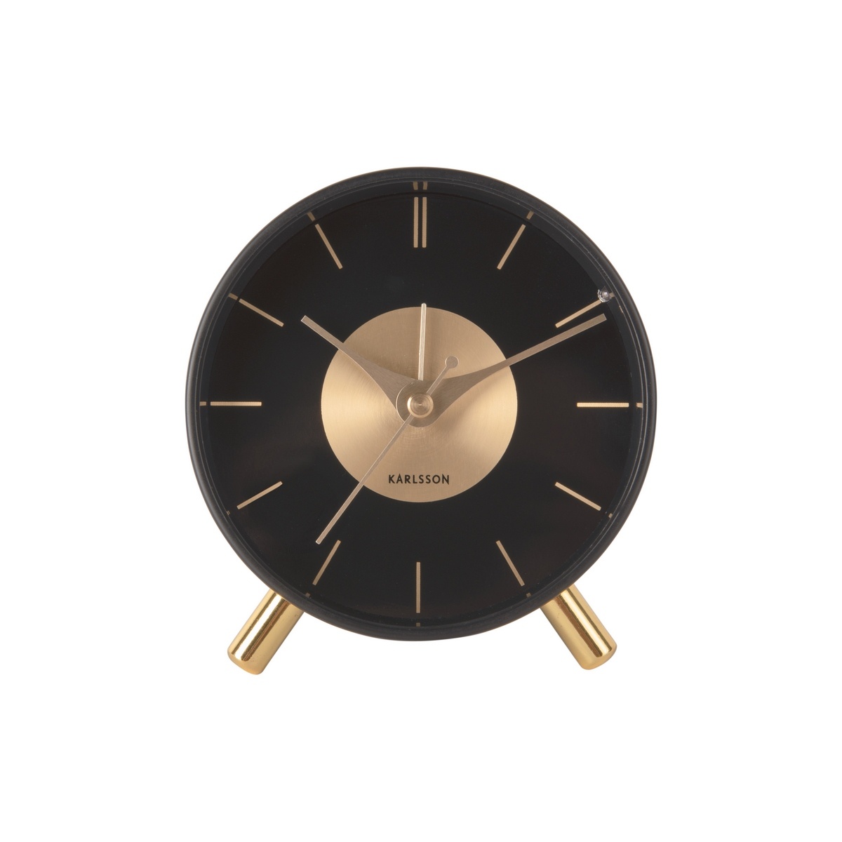 Dizajnový budík v matnom laku značky Karlsson bude zaujímavým doplnkom pre vašu spálňu. Elegantná kombinácia čiernej a zlatej farby. Ciferník je krytý ochranným sklom. Sekundovka s plynulým tichým posuvom. Priemer ciferníka 11 cm. Quartzový batériový strojček poháňaný batériou AA s tichým chodom (batéria nie je súčasťou balenia). Materiál hodín: lakovaný kov, sklo.Hodiny holandskej značky Karlsson sú kvalitné, nápadité a funkčné dizajnové doplnky, ktoré oživia každý interiér.Značka Karlsson pôsobí na trhu od roku 1999. So zastúpením vo viac než 80 krajinách sveta patrí medzi najobľúbenejšie a najpredávanejšie značky dizajnových hodín vo svojej triede na svete. Karlsson prichádza niekoľkokrát do roka s novými modelmi, ktoré pravidelne udivujú svojou originalitou a nevšednosťou.Pokiaľ od hodín očakávate dizajn a vkus, zvoľte značku Karlsson.