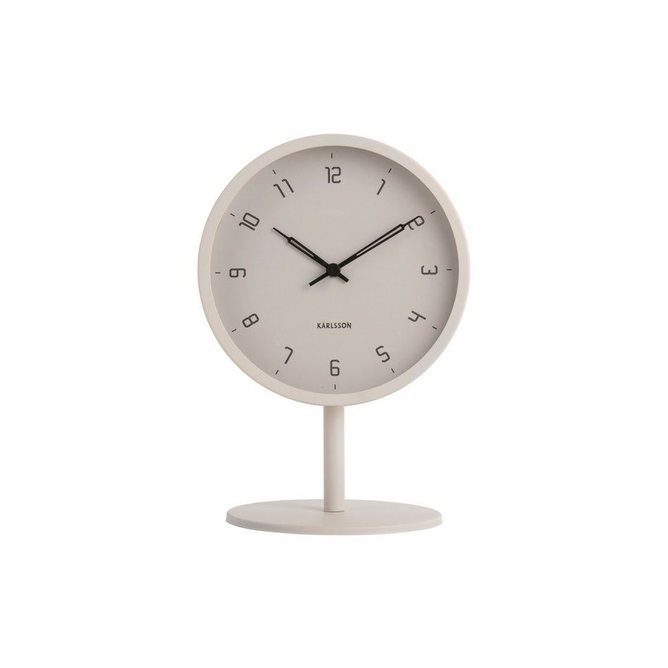 Dizajnové stolné hodiny v minimalistickom prevedení značky Karlsson, ideálny interiérový doplnok pre vašu obývaciu izbu, pracovňu alebo spálňu. Konštrukcia hodín v teplej sivej a ciferník s čiernymi akcentmi sa skvele dopĺňajú. Ciferník je krytý ochranným sklom. Quartzový hodinový strojček poháňaný batériou AA s tichým chodom (batéria nie je súčasťou balenia). Materiál: lakovaný kov a sklo.Hodiny holandskej značky Karlsson sú kvalitné, nápadité a funkčné dizajnové doplnky, ktoré oživia každý interiér. Značka Karlsson pôsobí na trhu od roku 1999. So zastúpením vo viac ako 80 krajinách sveta patrí medzi najobľúbenejšie a najpredávanejšie značky dizajnových hodín vo svojej triede na svete. Karlsson prichádza niekoľkokrát do roka s novými modelmi, ktoré pravidelne udivujú svojou originalitou a nevšednosťou.Pokiaľ od hodín očakávate dizajn a vkus, zvoľte značku Karlsson.