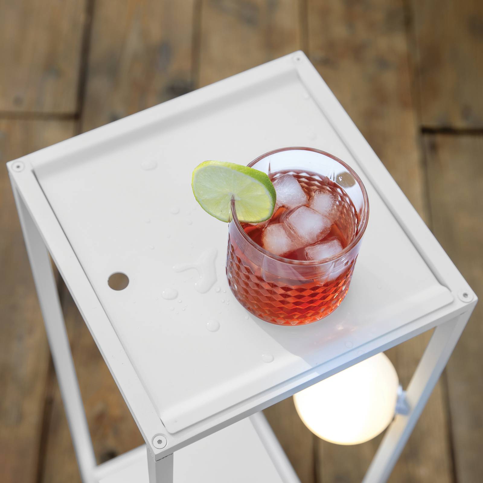 Podnos na nápoje pre vonkajšie svietidlo Abachina LED Elegantný hliníkový podnos na nápoje možno použiť ako príslušenstvo pre stojacie svietidlo Abachina LED od spoločnosti Karman. Stačí umiestniť podnos na horný okraj svietidla a štýlový dávkovač svetla možno použiť aj ako príručný stolík na odloženie ľadového čaju alebo lahodného zmrzlinového pohára