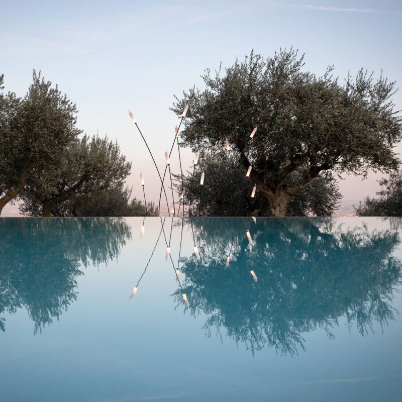 Filigránová bodová žiarovka Nilo s jemne tvarovaným zdrojom svetla vyrobeným zo živice Pozemná bodová lampa Nilo je výtvorom dizajnéra Matteo Ugoliniho, ktorý týmto umeleckým dielom opäť vyjadruje svoju blízkosť k prírode. Je určený na vonkajšie použitie, kde sa sám cíti najpohodlnejšie. Premyslený, zaujímavý tvar je výsledkom spomienok na letné popoludnie, keď bola pozorovaná harmonická súhra rieky a rastlín, ktoré tam rastú. stojaca lampa vizuálne silne pripomína tŕstie, ktoré sa akoby hojdajú vo vetre. Je vybavený hrotom na zem, dá sa umiestniť takmer kdekoľvek na mäkkom podklade a vďaka IP65 sa dá použiť aj pri vode. Jemná tyč z hliníka vedie v zakrivenom tvare k oblohe, rovnako ako sa rastliny orientujú k slnku. Na hornom konci je príťažlivý zdroj svetla, ktorý je vyrobený zo živice a je celý v bielej farbe. Mierne mliečna povrchová úprava zaisťuje rozptýlené svetlo, ktoré je vnímané veľmi príjemne, a ešte výraznejšie vyjadruje farbu teplého bieleho farba svetla LED. Vysoký index podania farieb navyše vedie k veľmi prirodzenému a expresívnemu vnímaniu farieb v bezprostrednej blízkosti. Svetlo je vyžarované dookola a vytvára jemné zvýrazňujúce osvetlenie. Predovšetkým použitie niekoľkých z týchto podlahových svetiel vyvoláva vzrušujúce svetelné efekty a šikovne umocňuje každú vonkajšiu plochu. Taliansky výrobca osvetlenia Karman založil svoju spoločnosť v Taliansku v roku 2005 a snaží sa spojiť tradíciu a modernosť vo svojich inovatívnych svetlách. Dôraz sa kladie na použitie nekonvenčných materiálov, ktoré sú určené na zvýšenie záujmu o výrobky. – vrátane 5 metrov dlhého kábla a vodotesného káblového plášťa – transformátor nie je súčasťou dodávky (pozri príslušenstvo)