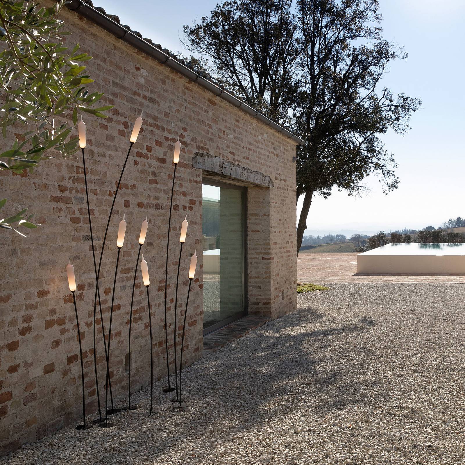 Elegantná dizajnová stojacia lampa Nilo na pevnú vonkajšiu montáž na podlahu Veľmi prirodzene vyzerajúca dizajnová stojacia lampa Nilo je vyrobená z vysokokvalitných materiálov a vybavená účinnými LED diódami. Hliníková tyč je elegantne spracovaná a vytvára dojem, že všetko je plynulé, pružné a ľahké. Jej zakrivený tvar harmonicky dopĺňa jemný, jedinečne tvarovaný živicový svetelný zdroj v matnej bielej farbe. Mäkké, teplé biele svetlo cez neho svieti približne do polovice hlavy svietidla. Dizajnéra Mattea Ugoliniho inšpirovali spomienky na miesto v Taliansku počas letného popoludnia, kde mohol pozorovať harmóniu medzi riekami a rastlinami a ožívajúcimi ľuďmi. Vzhľad svietidla Nilo pripomína vysoké trstiny alebo pôsobivé rastliny, takže je ideálne na výzdobu záhrady. S montážnym príslušenstvom možno svietidlo upevniť na zem a ponúka jedinečný svetelný zážitok na mieste, najmä ak doň integrujete viac týchto pekných svietidiel. Vďaka stupňu krytia IP65 ju možno umiestniť aj v blízkosti rybníkov. Nilo je skutočným pútačom pozornosti kdekoľvek v exteriéri a pôsobí veľmi vzrušujúco, pričom odráža myšlienky talianskej spoločnosti Karman, ktorá sa zaoberá osvetlením. Spájajúc tradíciu s modernosťou – oživuje výrobky, ktoré si vyžadujú záujem a pozornosť. Jedinečné svetlá od spoločnosti Karman majú svoje vlastné príbehy, ktoré chcú byť vyrozprávané – vrátane 5 m kábla a vodotesného káblového puzdra – transformátor nie je súčasťou dodávky (pozri príslušenstvo)
