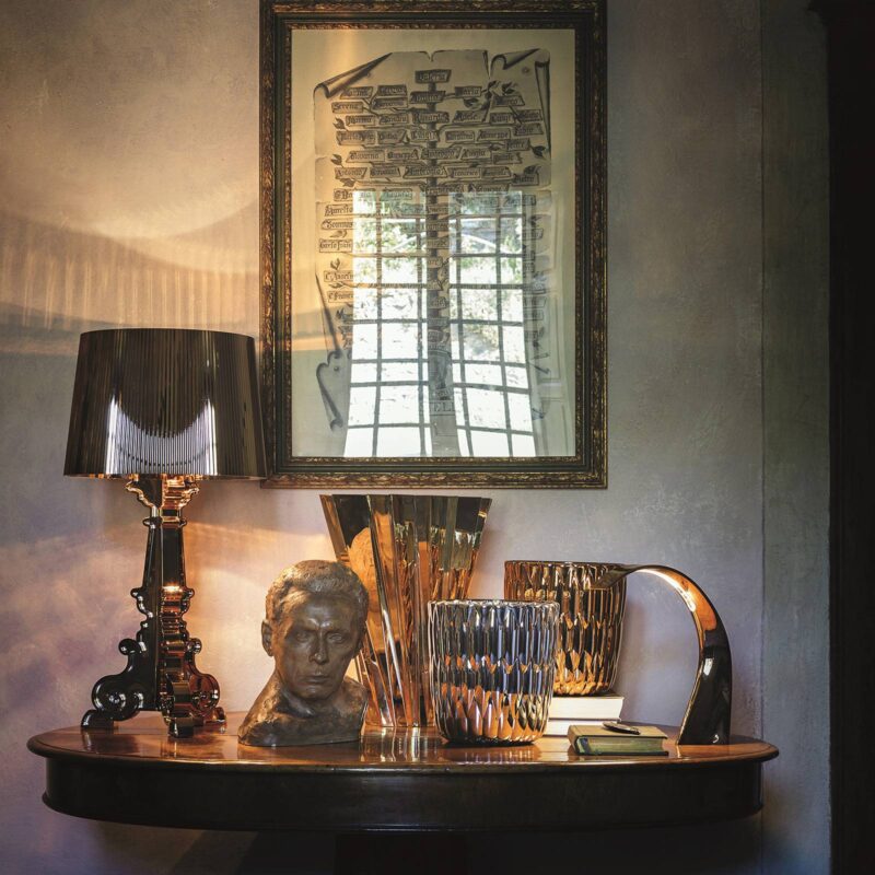 Stmievateľná dizajnová LED stolová lampa Bourgie od Ferruccia Lavianiho Štylizovaný dizajn stolovej lampy Bourgie, vyrobený výhradne z plastu, kombinuje barokové prvky (základňa) s klasickými (tienidlo na lampu) a ako celok predstavuje harmonickú symbiózu klasického a inovatívneho. Inovatívnou vecou spoločnosti Bourgie je myšlienka Na výrobu plastu z moderného materiálu sa používa stolová lampa s klasickými, barokovými vzormi a štylistickými prvkami. Aby sa uľahčilo používanie, bola lampa vybavená stmieva? . Talianska spoločnosť Kartell je známa svojimi inováciami z plastu. Dizajnéri vyvíjali pre milánsku spoločnosť nábytok, bytové doplnky a osvetlenie z plastu od 50. rokov. V priebehu rokov spoločnosť Kartell za to získala nielen množstvo ocenení za dizajn, ale zriadila aj svoje vlastné múzeum, ktoré uchováva a zdôrazňuje kultúrne, ideálne a materiálne dedičstvo spoločnosti.