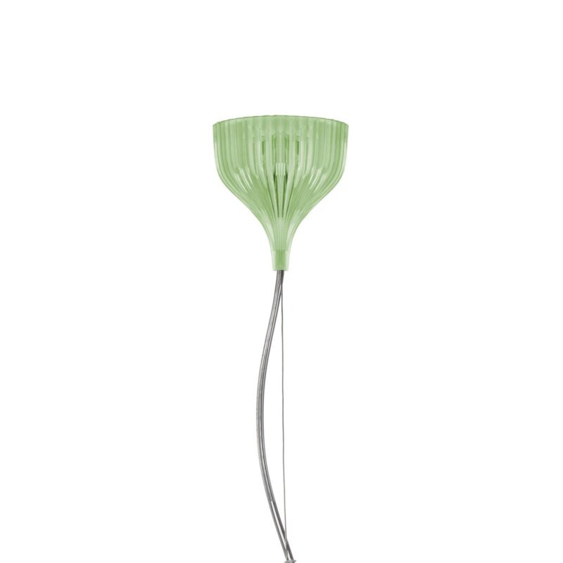 Prefarbený plast: závesné svietidlo Gé vyrobené z obnoviteľných surovín Farebné, mierne kónické tienidlo s jemnými drážkami má rovnakú farbu ako zúžený vrchlík závesnej lampy Gé. Zdrojom svetla je tu LED žiarovka, ktorá vyžaruje teplé biele svetlo energeticky úsporným spôsobom. Osvetlenie smeruje do všetkých smerov, pretože tienidlo je priesvitné. Tento šperk pochádza z pera Ferruccia Lavianiho, ktorý spolu s výrobcom dizajnových svietidiel Kartell vytvoril už viac ako 20 návrhov. Téma transparentnosti je pre taliansku spoločnosť kľúčová. Na jednej strane sú číre, priesvitné svietidlá a objekty originálne a stali sa ochrannou známkou spoločnosti. Na druhej strane je spoločnosť Kartell mimoriadne otvorená a poskytuje informácie o pôvode svojich materiálov, pretože materiály sú certifikované a recyklovateľné. Udržateľnosť je najvyššou prioritou spoločnosti Kartell od jej založenia.