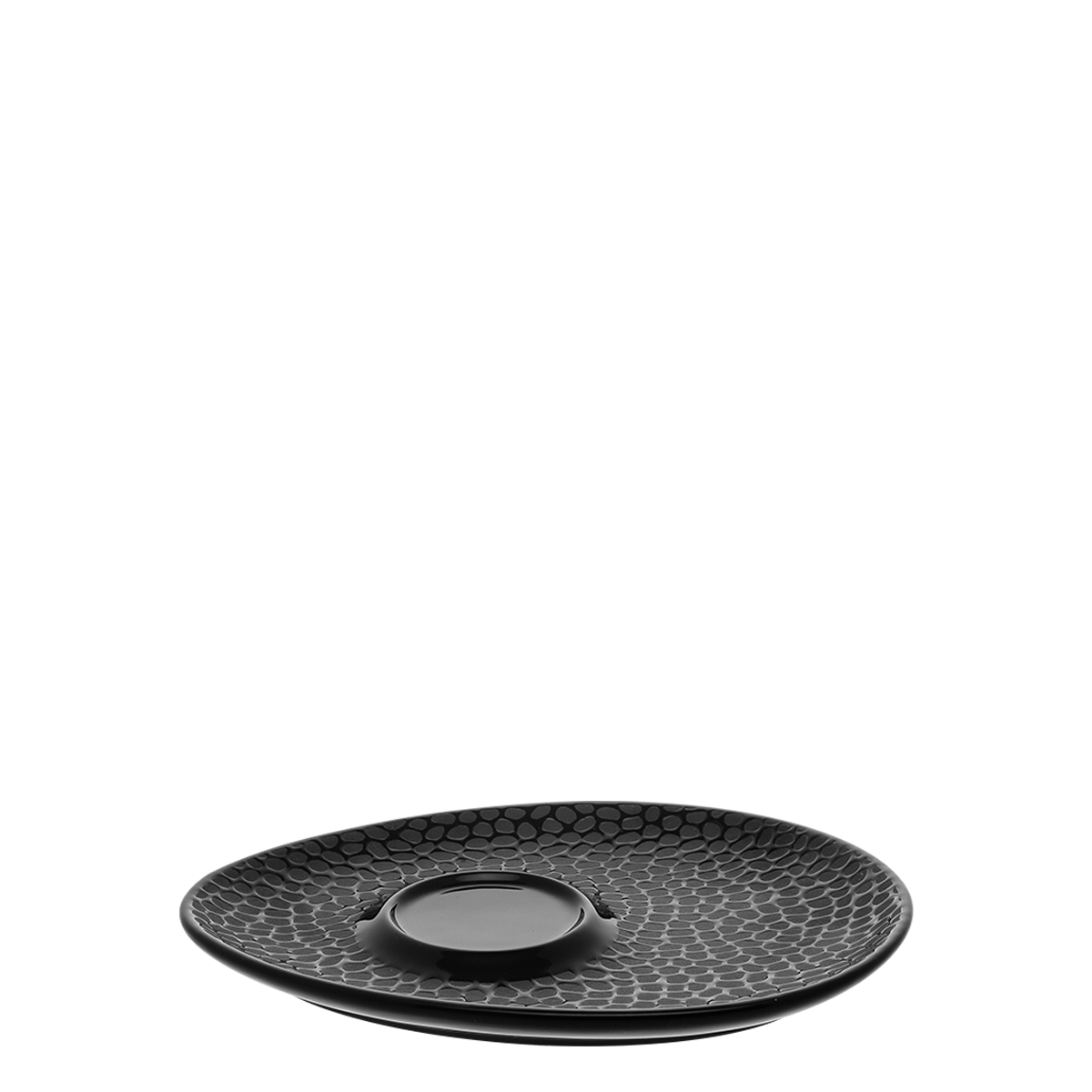 Kávová podšálka v trojuholníkovom tvare v kombinácii čiernej a sivej farbyje súčasťou kolekcie štruktúrovaného porcelánu z konceptu Flow. Povrchová úprava tohto porcelánu je kombináciou lesklej a matnej farby, vďaka čomu je vytvorený mimoriadne zaujímavý dizajn, ktorý spolu s ostatnými kúskami tejto kolekcie a príbormi v čiernom prevedení ponúka netradičné možnosti v rámci stolovania.