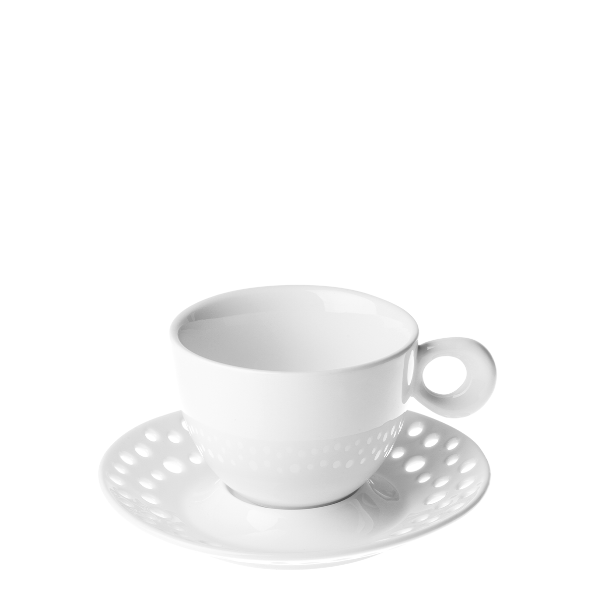 Pozdvihnite vaše ranné rituály na vyššiu úroveň s týmto elegantným kávovým setom. Šálky sú dokonale tvarované tak, aby ste si mohli vychutnať každý dúšok kávy alebo čaju. Set sme doplnili o štýlovú podšálku, ktorá nielen ochráni váš stôl, ale aj zvýrazní eleganciu. Podšálka s perforovaným vzorom je nielen praktická, ale aj očarujúca. Set obsahuje: 6x šálka na kávu – 200ml 6x perforovaná podšálka – 15cm