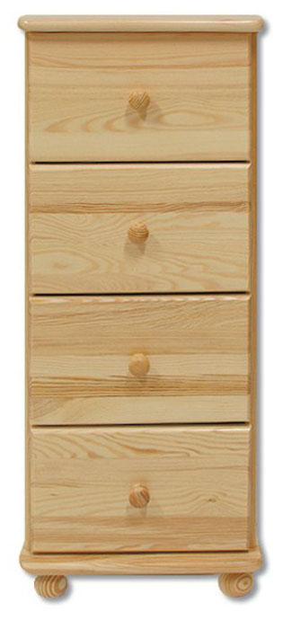 Komoda so 4 zásuvkami šírky 40 cm. Farebné prevedenie – prírodná borovica. Ponúkame za príplatok možnosť namorenia na odtieň dub, orech a jelša. Nábytok Drewmax je vyrobený z kvalitného borovicového masívu. Pozor!!! Produkt má špeciálnu povrchovú úpravu na ochranu proti škodcom. Preto v prípade ak máte záujem o produkt, ktorý chcete dodatočne namoriť, treba v objednávke uviesť: požadujem produkt bez povrchovej úpravy.