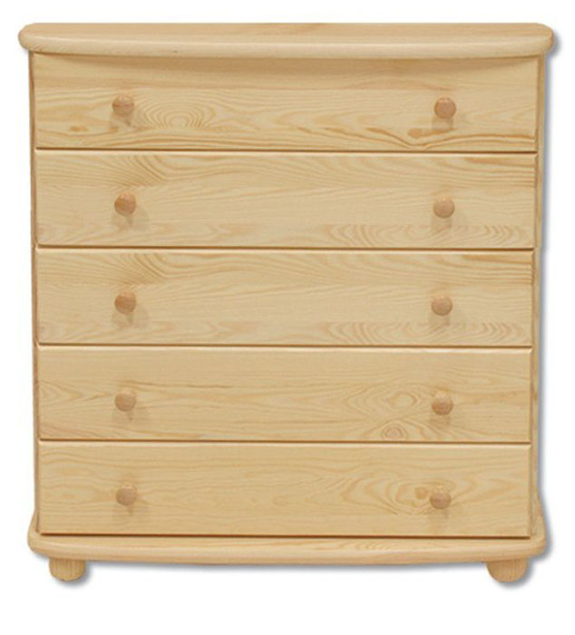 Komoda KD151 – 5 zásuviek. Farebné prevedenie – prírodná borovica. Možnosť namorenia na odtieň dub, orech a jelša za príplatok. Nábytok Drewmax je vyrobený z kvalitného borovicového masívu. Pozor!!! Produkt má špeciálnu povrchovú úpravu na ochranu proti škodcom. Preto v prípade ak máte záujem o produkt, ktorý chcete dodatočne namoriť, treba v objednávke uviesť: požadujem produkt bez povrchovej úpravy.