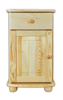 KD159 Kombinovaná skrinka -1 dvierka, 1 zásuvka. Masívna celodrevená skrinka so zaoblenými hranami, guľatým úchytom a nohami. Vhodné do spálne či študentskej izby. Farebné prevedenie: prírodná borovica (Dr-borovica). Možnosť namorenia na odtieň dub (Dr-dub), jelša (Dr-olcha) alebo orech (Dr-orech) za príplatok. Drevo je špeciálne upravené lakovaním na ochranu pred poškodením a zaručuje dlhú životnosť nábytku.