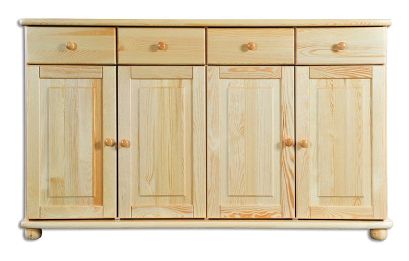 KD165 Kombinovaná komoda so 4 dvierkami a 4 zásuvkami. Celodrevená komoda z kvalitného borovicového masívu so zaoblenými hranami, guľatým úchytom a nohami. Vhodné do spálne či študentskej izby. Farebné prevedenie: prírodná borovica (Dr-borovica). Možnosť namorenia na odtieň dub (Dr-dub), jelša (Dr-olcha) alebo orech (Dr-orech) za príplatok. Drevo je špeciálne upravené lakovaním na ochranu pred poškodením a zaručuje dlhú životnosť nábytku.