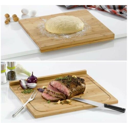 Štýlová obojstranná doštička na krájanie vyrobená z bambusu pre maximálne využitie v každej kuchyni.Doštičku umývajte ručne z oboch strán, dôkladne osušte a nechajte uschnúť. Doštičku nikdy neumývajte v umývačke a nesušte na kúrení. Pri umývaní neponechávajte ponorené do vody. Povrch doštičky pravidelne olejujte (nedostatočne olejovaný vysušený povrch šedne a stráca farbený kontrast). K olejovaniu používajte oleje odporúčané na ošetrenie dreva prichádzajúceho do styku s potravinami. Môžete ale použiť aj bežný olivový olej.