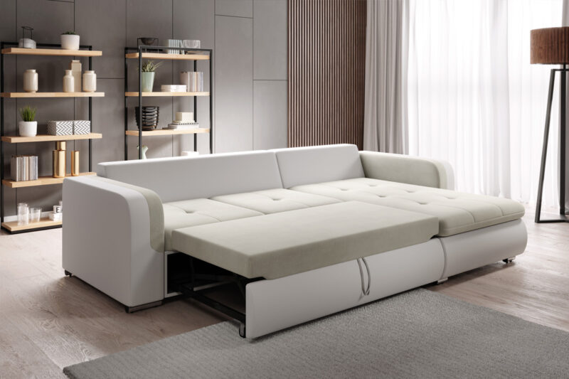 KENY MINI je dizajnová a štýlová rohová sedacia súprava, ktorá sa bude vynímať v moderných a priestranných interiéroch.Sedák je tvorený kvalitnou vlnovcovou pružinou v kombinácii s pohodlnou PUR penou o hustote T-30. Sedačka je čalúnená ekokožou MADRYT 120 a kvalitnou poťahovou látkou Milo 4. Nožičky sú vyrobené z kovu, pochrómované.Súčasťou sedačky sú tri okrasné vankúšiky.Sedačka je rozkladacia. Rozložíte ju pomocou automatu typu DELFIN. Poskytne vám spaciu plochu: 217 x 134 cm. Rozmery sedačky (š,v,h): 267 x 76 x 162 cm. Výška sedačky bez vankúšov: 67 cm. Hĺbka sedacej časti: 48 cm. Výška sedenia: 42 cm. Výška nožičiek: 5 cm.Sedačka je v pravom prevedení rohu. V ponuke nájdete rohovú sedačku KENY MINI aj v ľavom prevedení rohu.Dodávame v demontovanom stave.