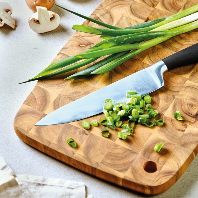 Doštička na krájanie od nemeckej značky Kesper z akáciového dreva sa stane štýlovým doplnkom každej kuchyne. Dokonalá mozaiková štruktúra prináša nielen krásny vzhľad, ale aj odolnosť pri každodennom používaní. Ošetrenie olejom BIOFA chráni povrch pred vlhkosťou, čo zaručuje dlhú životnosť. Praktický otvor na zavesenie umožňuje ľahké skladovanie a ušetrí vám miesto.Hlavné výhody produktu: