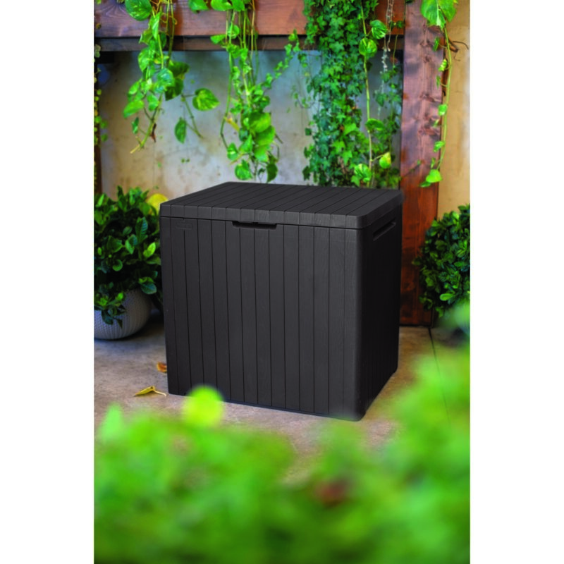 Tento praktický úložný box poslúži na uskladnenie vankúšov k záhradnému nábytku, hračiek alebo záhradného náradia. Môžete ho využiť aj ako dizajnový stolček. Je vyrobený z kvalitného plastu, ktorý má UV ochranu a je odolný voči nepriaznivému počasiu. Klasická farba sa hodí ku každému záhradnému nábytku.