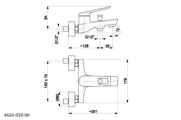 KFA – AMAZONIT nástenná vaňová batéria, chróm 4624-010-00
