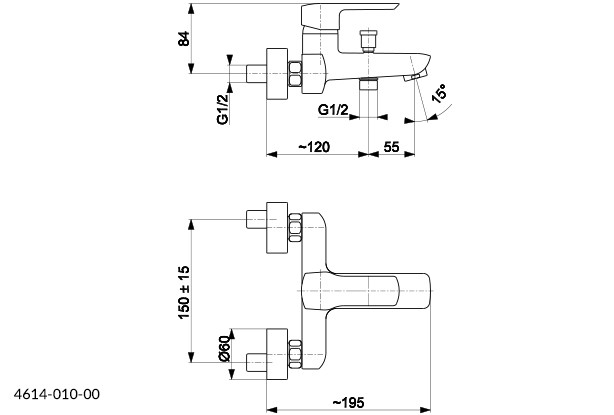 KFA – AQUAMARYN nástenná vaňová batéria, chróm 4614-010-00