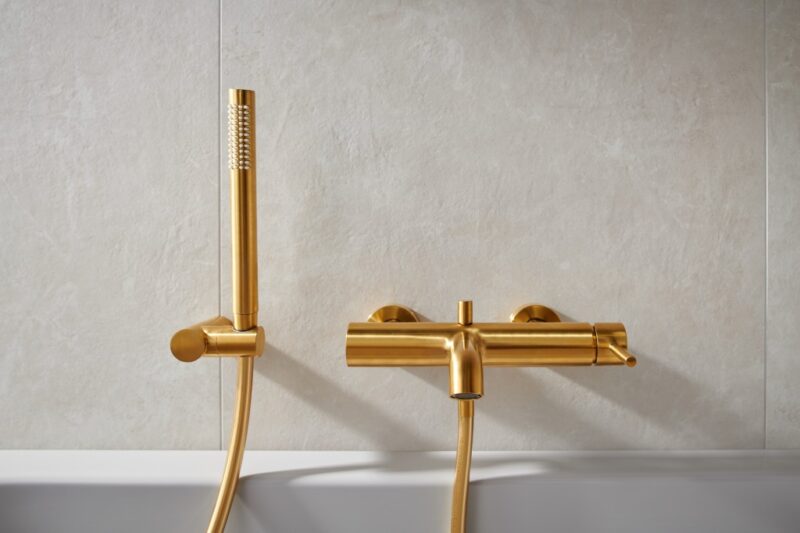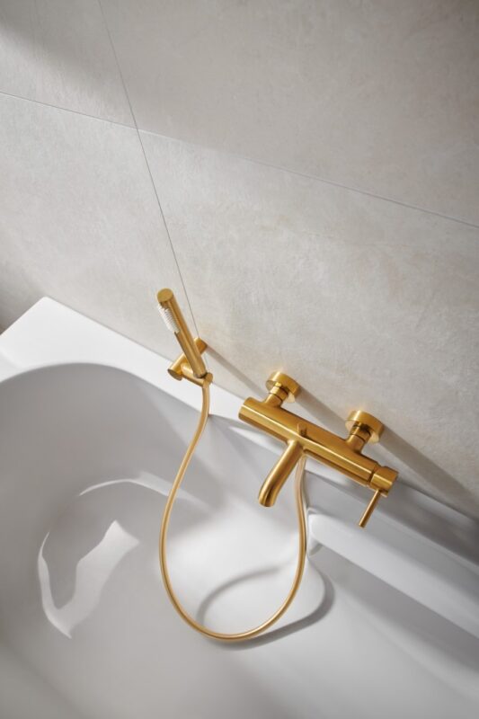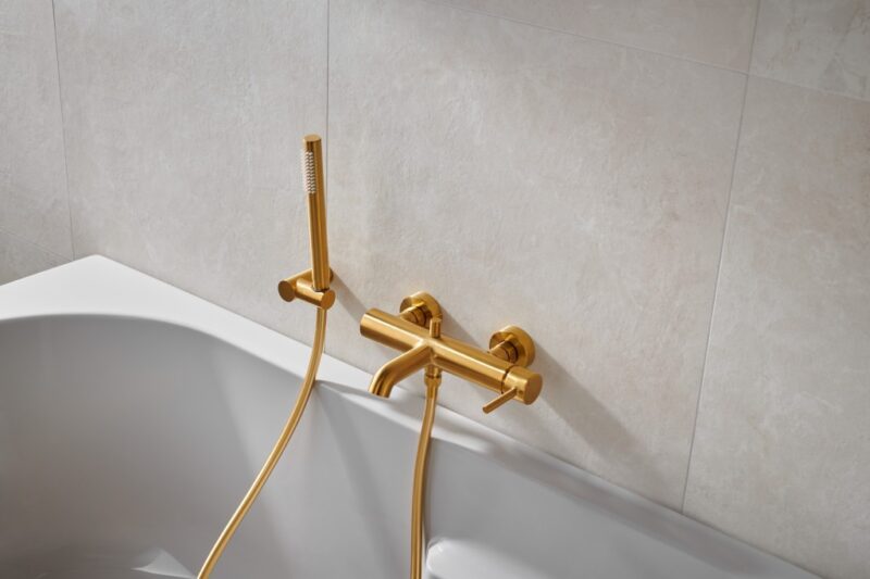 KFA – Batéria MOZA vaňová nástenná, brúsené zlato so sprchovou súpravou 5034-520-31