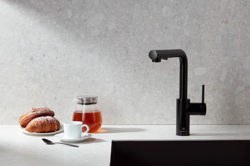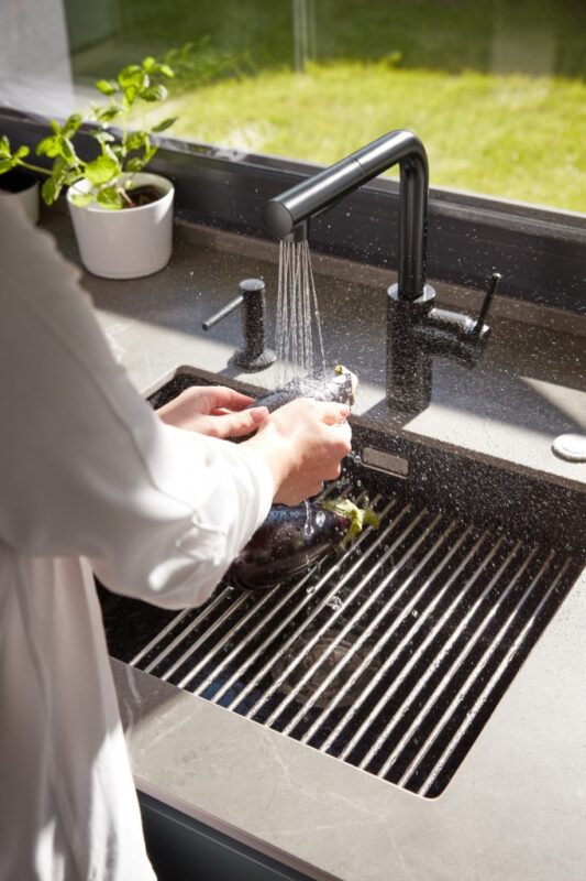 KUCHYNSKÁ BATÉRIA DUERO BASIC BLACK S VÝSUVNOU HUBICOUIdeálna kuchynská batéria musí byť predovšetkým pohodlná pri každodennom používaní – umývacia plocha je najčastejšie využívaným priestorom v kuchyni. Základom takejto batérie je teda výsuvný výtok a možnosť prepínať typ prúdu vody. Naše vodovodné batérie z novej kolekcie Duero majú obe tieto funkcie. Veľkou vymoženosťou je odnímateľný perlátor (kľúč na demontáž je súčasťou sady ihneď pri kúpe) a silikónové, ľahko čistiteľné trysky.Batérie Duero sa montujú pomocou stabilného montážneho puzdra. Kuchynská batéria sa môže stať dôležitým dekoratívnym prvkom v každej kuchyni. Kolekcia je dostupná v dvoch farebných variantoch: matná čierna a brúsená oceľ. Ean: 5907571660204