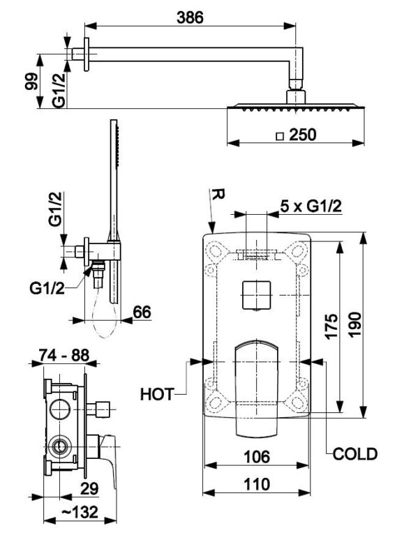 PODOMIETKOVÝ SPRCHOVÝ SET MOKAIT S 3-FUNKČNOU BATÉRIOUKomfortné riešenie v kúpeľni sú funkčné a krásne výrobky, ale aj kompaktné riešenie. V kúpeľniach, kde je cenný každý centimeter, sú podomietkové systémy perfektné. Podomietkové výrobky z našej ponuky sa tiež ľahko inštalujú. Hotové kompletné sady obsahujú všetko potrebné na ich bezpečnú a jednoduchú inštaláciu v kúpeľni. Nie je potrebné vyberať prvky samostatne – v jednom boxe je všetko, čo potrebujete. Voľba podomietkového kovania zaisťuje jednoduché použitie vďaka úspore miesta, ale aj zníženiu počtu prvkov, ktoré treba každý deň čistiť. Ploché čelá podomietkových batérií sa ľahko čistia a montážne prvky sú ukryté v stene, čím úplne odpadá nutnosť čistenia. Ean: 5907571552479