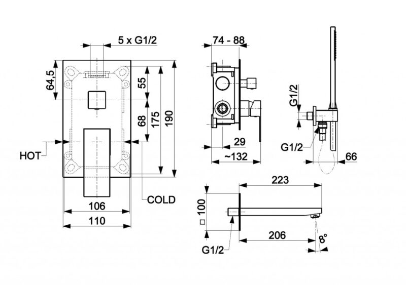 Komfortné kúpeľňové riešenia sú funkčné a krásne výrobky, ale aj kompaktné riešenia. V kúpeľniach, kde je cenný každý centimeter, podomietkové systémy fungujú perfektne. Jednoduchú montáž zaistí aj výrobky pod omietku z našej ponuky. Hotové kompletné sady obsahujú všetko potrebné na ich bezpečnú a jednoduchú inštaláciu v kúpeľni. Prvky nie je potrebné vyberať samostatne – všetko, čo potrebujete, je už v jednej krabici. Voľba podomietkového kovania zaisťuje pohodlné používanie vďaka úspore miesta, ale aj zníženiu počtu prvkov, ktoré treba každý deň čistiť. Ploché čelá podomietkových batérií sú ľahko umývateľné a ukrytie montážnych prvkov do steny úplne eliminuje nutnosť ich čistenia.(GT) Ean: 5907571512503