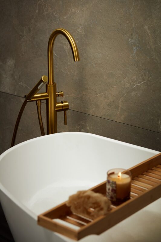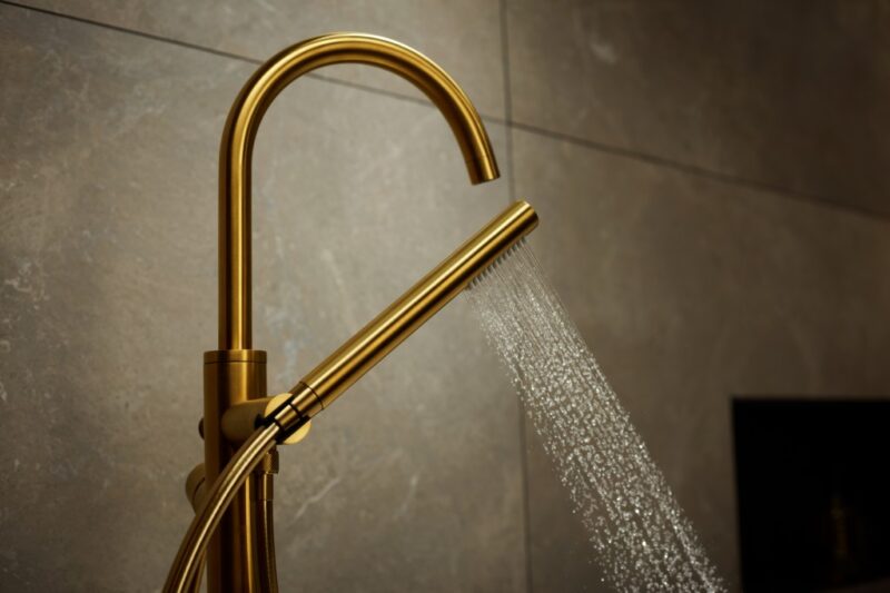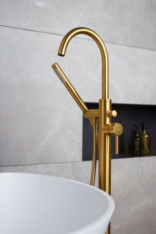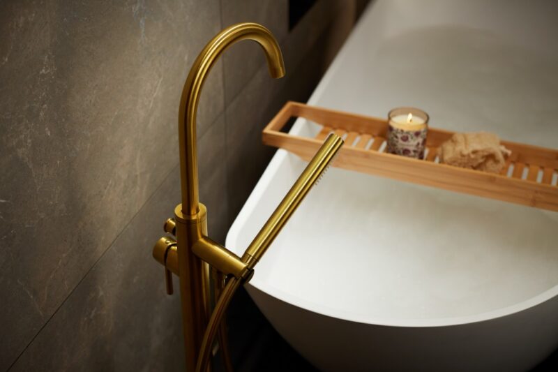 STOJATÁ VANOVÁ BATÉRIA MOZA GOLDDizajn kolekcie Moza je dokonalý v každom detaile. Každý prvok je tu výnimočný: od ultramoderných ručných spŕch v prémiových dažďových sprchách cez výtoky pri umývadlových batériách až po tvar termostatických batérií. Kolekcia obsahuje všetky potrebné produkty na zaistenie komplexného vybavenia každej jednotlivej kúpeľne. Dôležité je, že umývadlové a bidetové batérie sú ekologické. Spotreba vody je iba 6 l/min.