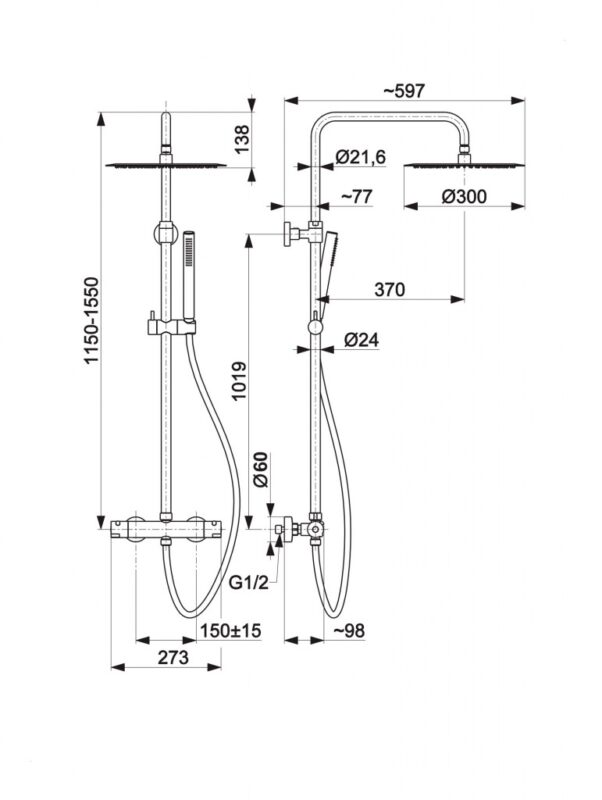 KFA – Sprchová batéria MOZA PREMIUM, termostatická so sprchovým stĺpom (LONGER BAR) 5736-921-31
