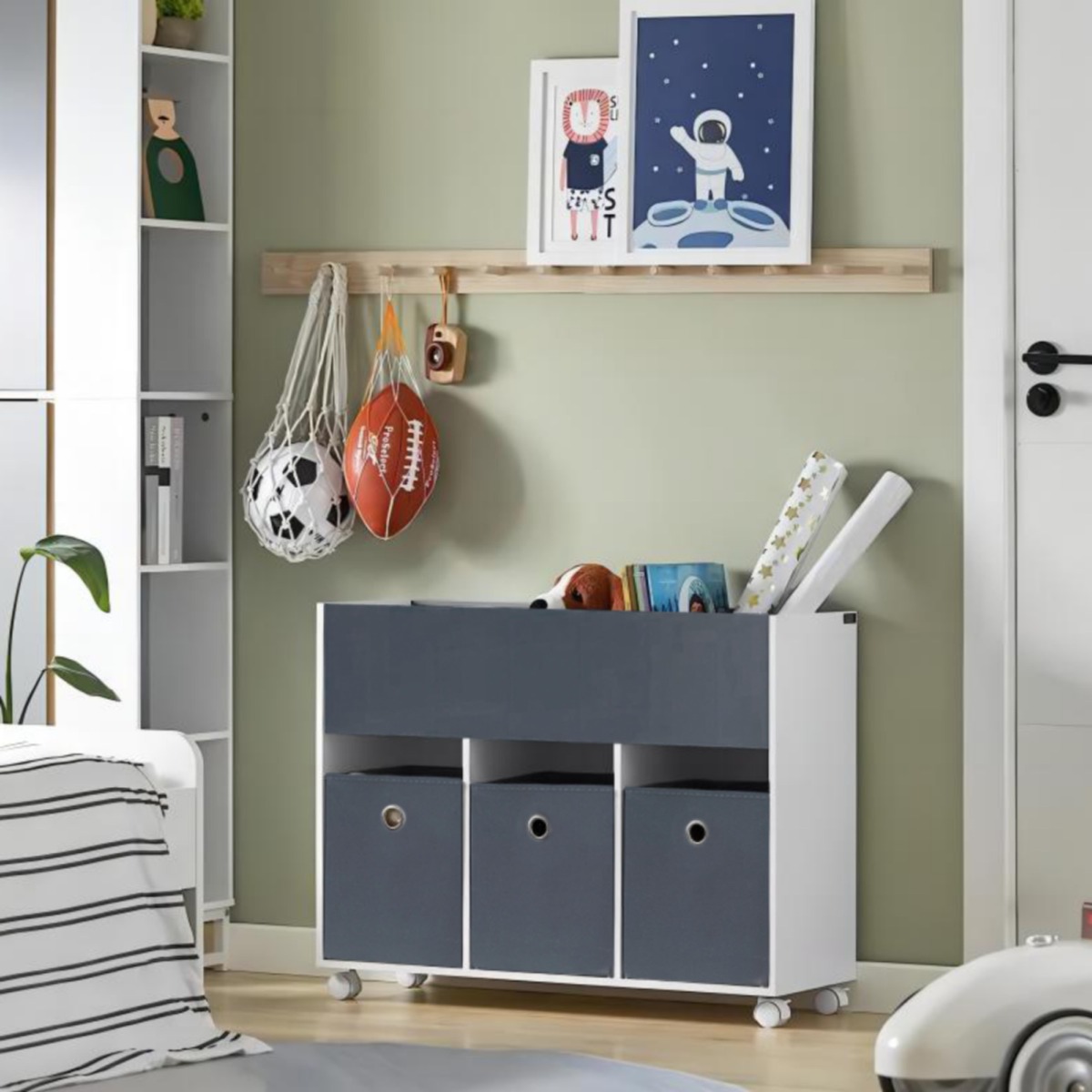 Detský regál na kolieskach KINDER bude Vašim praktickým pomocníkom, ktorý udrží izbu Vašej ratolesti vždy upratanú a prehľadnú. Regál má k dispozícii 3 pevné horné priehradky a 3 látkové boxy, čím poskytuje dostatok úložného priestoru. Praktické kolieska pomáhajú jednoduchý presun regálu tam, kde ho práve potrebujete. Rozmery:šírka: 80 cmvýška: 63 cmhĺbka: 30 cmDodávame v demontovanom stave.