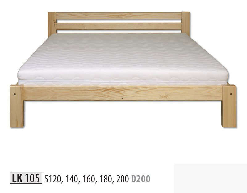 LK105 Posteľ – korpus šírka 120 cm. Posteľ z masívneho borovicového dreva. Farebné prevedenie: prírodná borovica. Možnosť namorenia na odtieň jelša, orech a dub. Možnosť doobjednať rošt a matrac – nie je v cene postele.