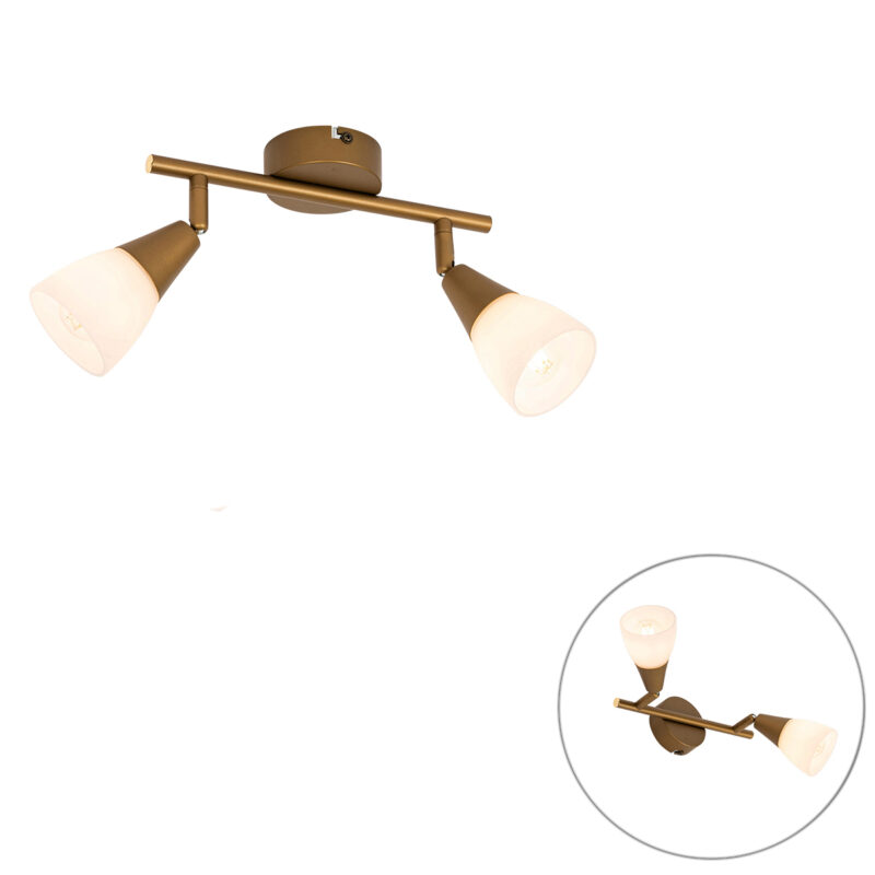 Klasické stropné bodové svietidlo zlaté s matným sklom 2-svetlo – Madi