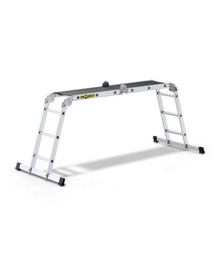 Univerzálny hliníkový rebrík, zaisťujúci pohodlie pri práci a široké možnosti použitia. Jeho najväčšou výhodou je ľahká, skladná a rýchlo rozložiteľná a zložená konštrukcia. Celok je zabezpečený dvomi širokými stabilizačnými priečkami a vo verzii 4×3 prídavnou pracovnou plošinou. Jeden pracovný nástroj, toľko možností! Systém je podľa potreby zabezpečený spoľahlivými, samosvornými pántmi, ktoré umožňujú neprerušovanú prevádzku v akejkoľvek konfigurácii. Rebrík má protišmykové drážkované priečky, ktoré zvyšujú stabilitu rebríka pri používaní. Jeho bezpečnosť a odolnosť potvrdzuje splnená norma EN 131. Má až 4 rôzne varianty usporiadania, presvedčte sa sami, že lepšie vybavenie pre vašu profesionálnu prácu nenájdete.