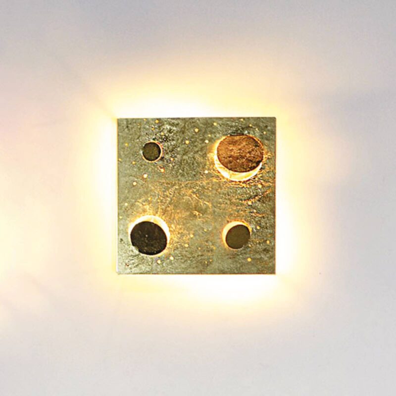 Štvorcové stropné a nástenné svietidlo Buchi so zlatou povrchovou úpravou – inšpirované hviezdnou oblohouToto kompaktné svietidlo sa dá ľahko nainštalovať na strop aj na stenu. Lampa Buchi poskytuje neoslňujúce, rozptýlené svetlo a zároveň vytvára efektné dekoratívne akcenty. Dizajn bol inšpirovaný zázrakom hviezdnej nočnej oblohy, ktorá ľudí uchvacuje od nepamäti. Zvláštnosť stropného a nástenného svietidla Buchi: Každý kus je vyrobený ručne a od ostatných svietidiel sa líši mnohými jemnými detailmi. Efektná zlatá povrchová úprava lampy Buchi, vyrobená z odolného oceľového plechu, dodáva modelu luxusný šmrnc. Tento originálny zdroj svetla je správnou voľbou na vytvorenie sofistikovaného, osobitého konceptu miestnosti. Zo stropného a nástenného svietidla Buchi však jednoznačne profitujú aj útulné obytné ostrovčeky v podkroví alebo moderný a trendový domov.