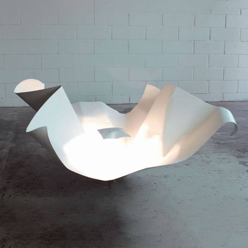 Exkluzívna dizajnová závesná LED lampa Crash s efektom nepriameho osvetleniaNeobvyklé tienidlo závesnej LED lampy Crash vzdialene pripomína vreckovku, ktorá bola mierne pokrčená a potom nedbalo odhodená. Crash je teda aj príhodný názov. Oceľové prvky tienidla boli vyrobené ručne a na niektorých miestach boli zámerne preliačené a ohnuté. Tieto mierne deformácie sú okrem iného zodpovedné aj za špeciálny svetelný efekt. Svetlo sa vyžaruje nepriamo, keďže svetelný zdroj je umiestnený v konzole a svetlo sa najprv vyžaruje smerom k stropu. Potom sa odráža od veľkého tienidla a vyžaruje do miestnosti ako nepriame svetlo. Crash je dizajnový výrobok spoločnosti Knikerboker a je ručne vyrábaný v Taliansku.