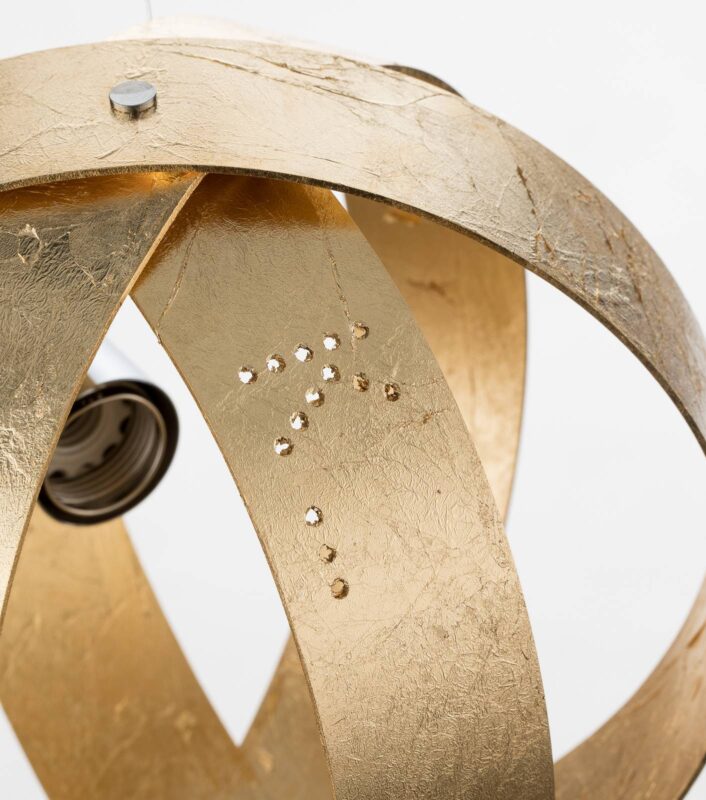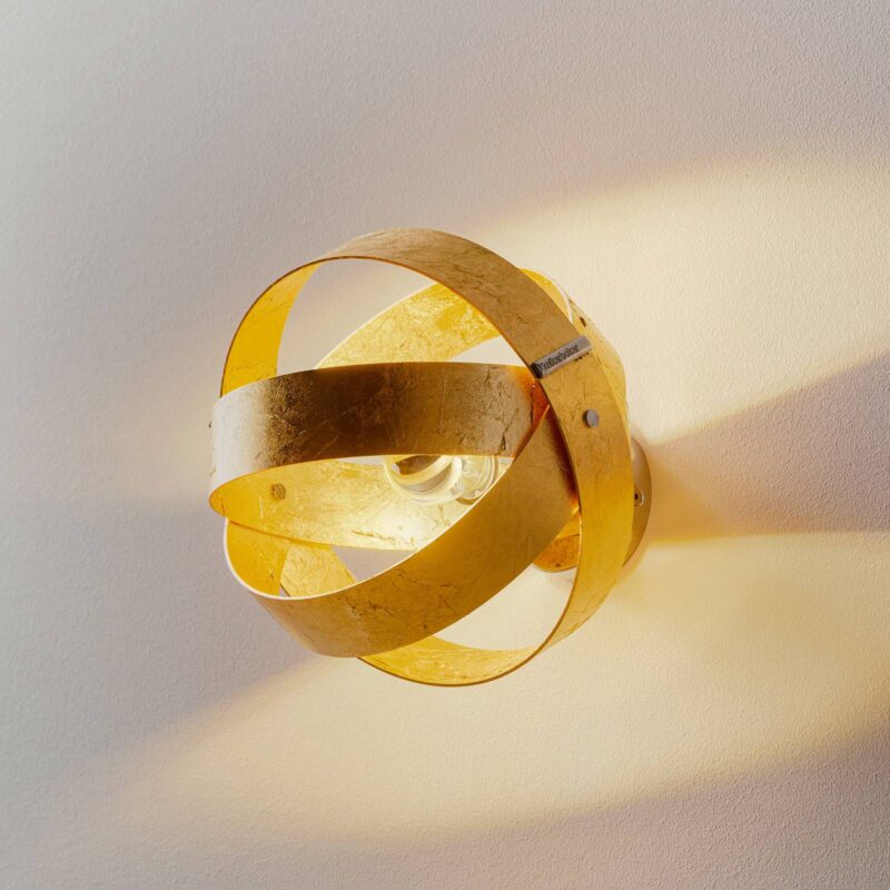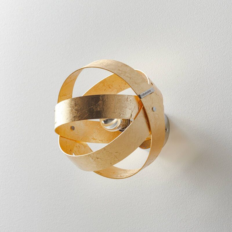 Mimoriadne nástenné LED svietidlo Ecliptika v zlatom farebnom prevedeníToto mimoriadne svietidlo sa prezentuje ako sofistikované nástenné a stropné svietidlo zároveň. Nový majiteľ sa sám rozhodne, kam chce úsporné LED svietidlo Ecliptika namontovať. Okrem talianskej výroby stropného a nástenného svietidla ako skutočného unikátu priťahuje svetelná skulptúra pozornosť svojím zlatým vzhľadom. Ak hľadáte niečo výnimočné, so stropným svietidlom Ecliptika to určite nájdete. Sférický dizajn je členený otvormi, cez ktoré môže atmosférické svetlo dosiahnuť do celej miestnosti. Umelecký dizajn svietidla v odkaze na svet geometrie z neho robí skutočne jedinečné umelecké dielo.