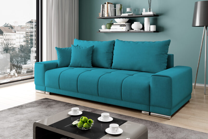 Elegantný trojsedák KOCHAB je navrhnutá v modernom duchu. Vďaka využitiu najžiadanejších prvkov sa stane ozdobou Vášho interiéru. Zaujme Vás štýlové prešívanie sedacej časti ako aj efektné opierkové a dekoračné vankúšiky. Celkové prevedenie dotvárajú lesklé nožičky valcového tvaru. Sedačka je vyrobená v kombinácii vlnovcovej pružiny a PUR peny s pevnosťou T30, ktorá zaručí pohodlné sedenie pri chvíľach relaxu. Ponúka praktický úložný priestor, ktorý oceníte v každej domácnosti. Jej neoddeliteľnou súčasťou je funkcia rozkladu, ktorá využíva mechanizmus MOSS. S jeho využitím dokážete jednoduchým spôsobom vytvoriť ložnú plochu 148 x 196 cm, vhodnú na príležitostné spanie. Sedačka je čalúnená kvalitnou látkou. Prevedenie Orinoco 85.Rozmery (š/v/h): 255 x 98 x 105 cm. Výška bez vankúšov 74 cm, hĺba sedáku 58 cm, výška sedáku 40 cm. Nožičky majú výšku 5,5 cm. Dodávame v demonte. V našej ponuke nájdete aj ďalšie farebné prevedenia tohto trojsedáku ako aj rohovú sedačku KOCHAB.