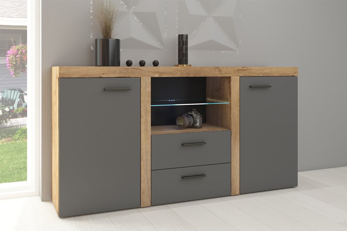 Kombinovaná komoda BRUMA grafit/dub lefkas