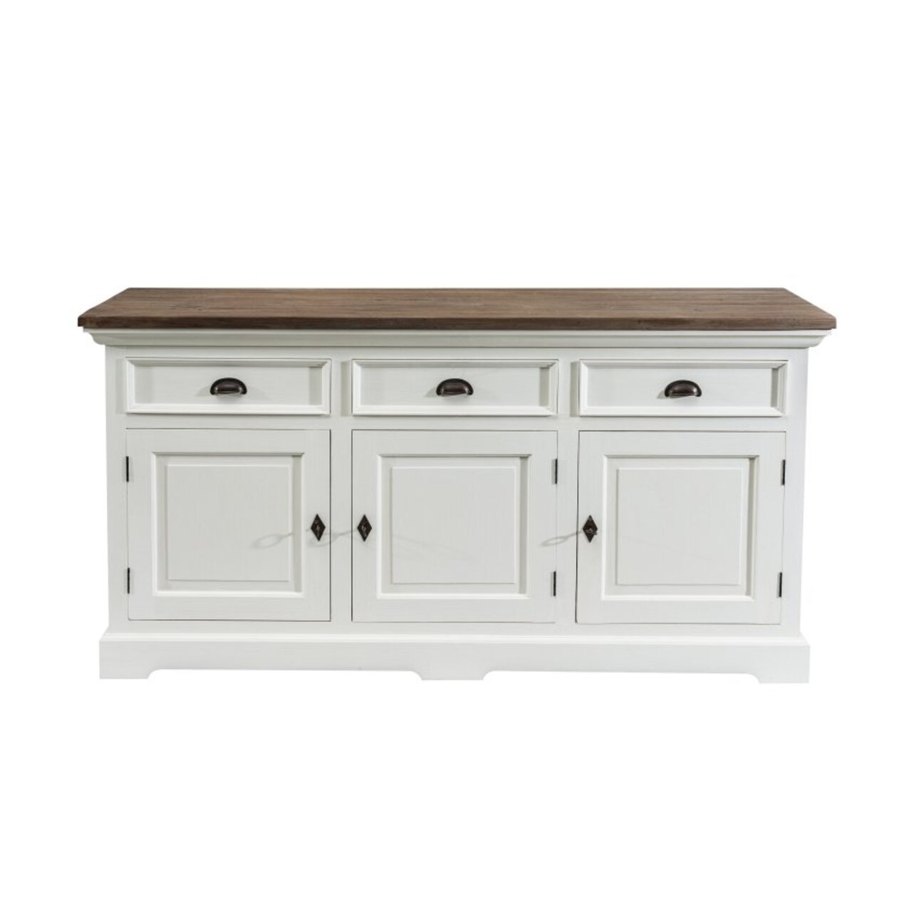 Originálna a praktická komoda s 3 zásuvkami a 3 dvierkami vyrobená z recyklovaného dreva. V prostriedku sa nachádza jedna polička umiestnená v celej šírke skrinky. Ideálny nábytok do obývačky, ktorý nám umožní uschovávať stolovaciu súpravu, príbory či Vaše osobné dokumenty. Použité teakové drevo, jediné svojho druhu, pochádza zo starých indonézskych rybárskych lodí – neobyčajne odolný a dobre naimpregnovaný materiál nám poslúži mnoho rokov.Kolekcia Brighton je sériou krásneho, pevného, ručne robeného nábytku, vyrobeného z teakového dreva natretého nabielo. Dizajn, spôsob výroby a náteru nadväzuje na klasický anglický nábytok štylizovaný do retro štýlu. Interiéry zariadené nábytkom Brighton sú hrejivé a útulné. Hodia sa tiež k rôznym štýlom – do interiérov zariadených v anglickom, škandinávskom, klasickom a rustikálnom štýle.Forma zásielky: Nábytok je zmontovaný a pripravený na použitie. Všetok nábytok, ktorý predávame, je k dispozícii v našom sklade a zasiela sa neodkladne po vytvorení objednávky. Nábytok Brighton zasielame v celku, zbalený na paletách a prostredníctvom špedičnej firmy. Pri odbere sa, prosím, uistite, či sú balíky na paletách celkom bez stopy poškodenia. V prípade, že sa vyskytnú akékoľvek viditeľné poškodenia, skontaktujte sa s nami alebo postupujte v súlade s reklamačným poriadkom.Materiál: masívne teakové + recyklované mahagónové drevoRozmery: šírka 180 cm, hĺbka 55 cm, výška 95 cmFarba: biela + prirodzenáKovanie: štylizované, kov