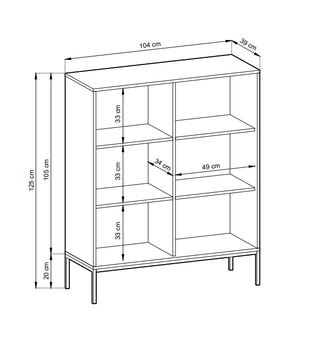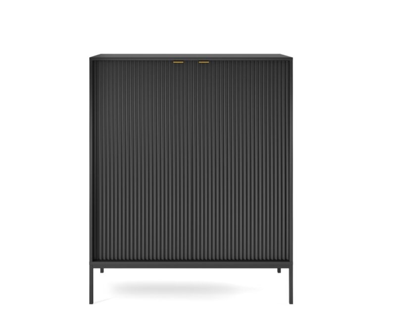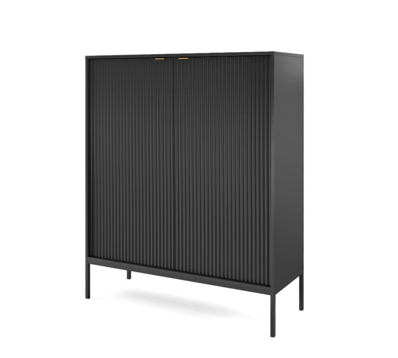 Dizajnový sektor NEW dodá Vašej obývacej miestnosti štýl. Pri sektore NEW sú použité najnovšie trendy v dizajne nábytku a kvalitný materiál. Korpus je vyrobený z 16mm LTD odolnej voči poškriabaniu, na dvierkach je použitá 18mm MDF riflovaná doska a úchyty sú hliníkové v zlatom farebnom prevedení. Všetky hrany sektoru NEW sú chránené ABS páskou.Komoda NEW K104 má dvoje dvierka za ktorými sa nachádzajú praktické police, ktorý poskytujú dostatočný úložný priestor. Materiál: 16mm LTD, ABS hrany, hliníkové zlaté úchyty, 18mm MDF riflovaná doska na dvierkachRozmer (ŠxVxH) : 104 x 125 x 39 cmVýška nožičiek: 20 cm Farebné prevedenie : čiernaDodávame v demonte.